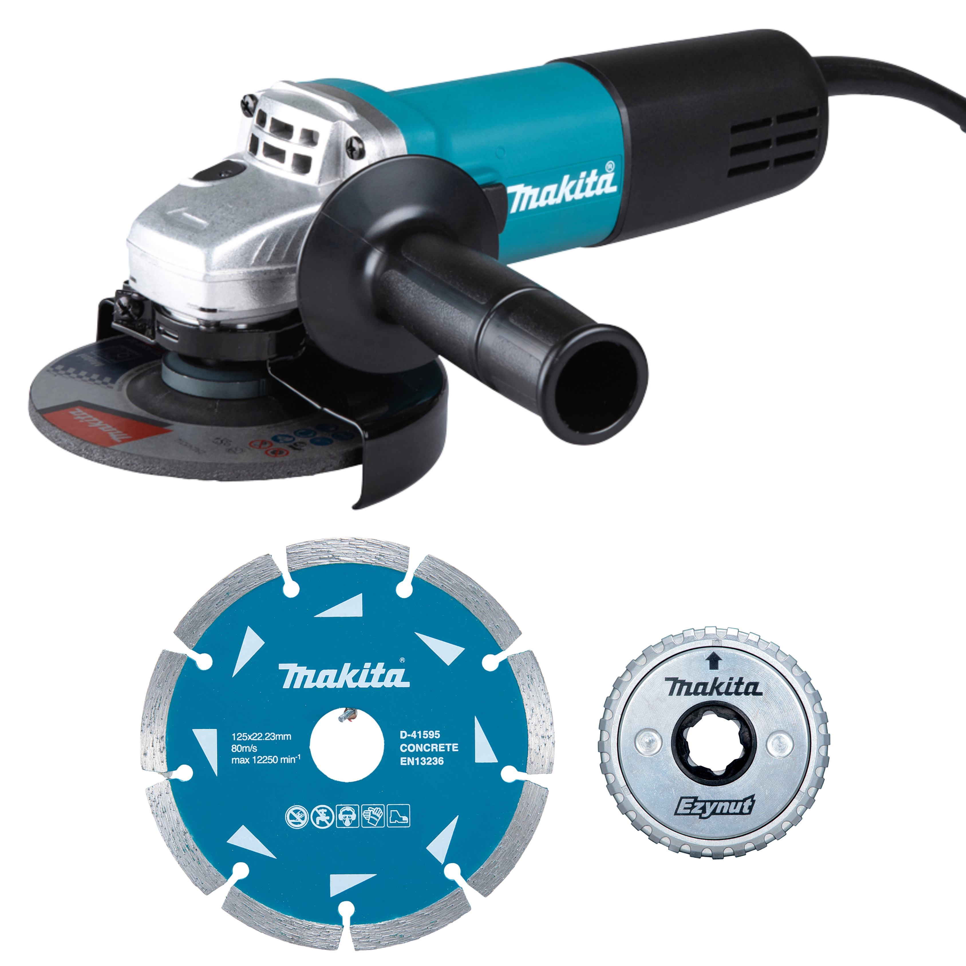 Miniamoladora Angular Makita 9558HNR + Disco de diamante 125x22,23mm + Tuerca rápida M14